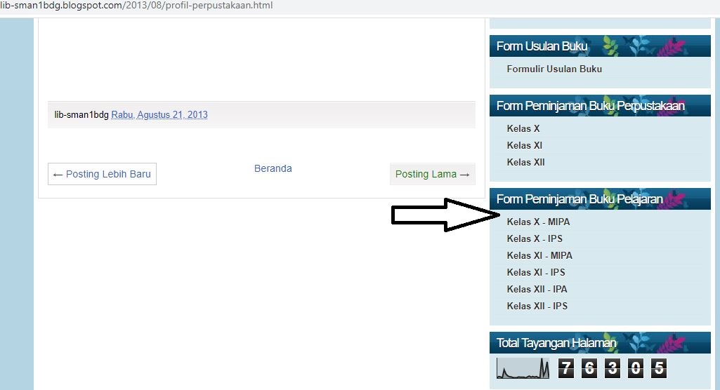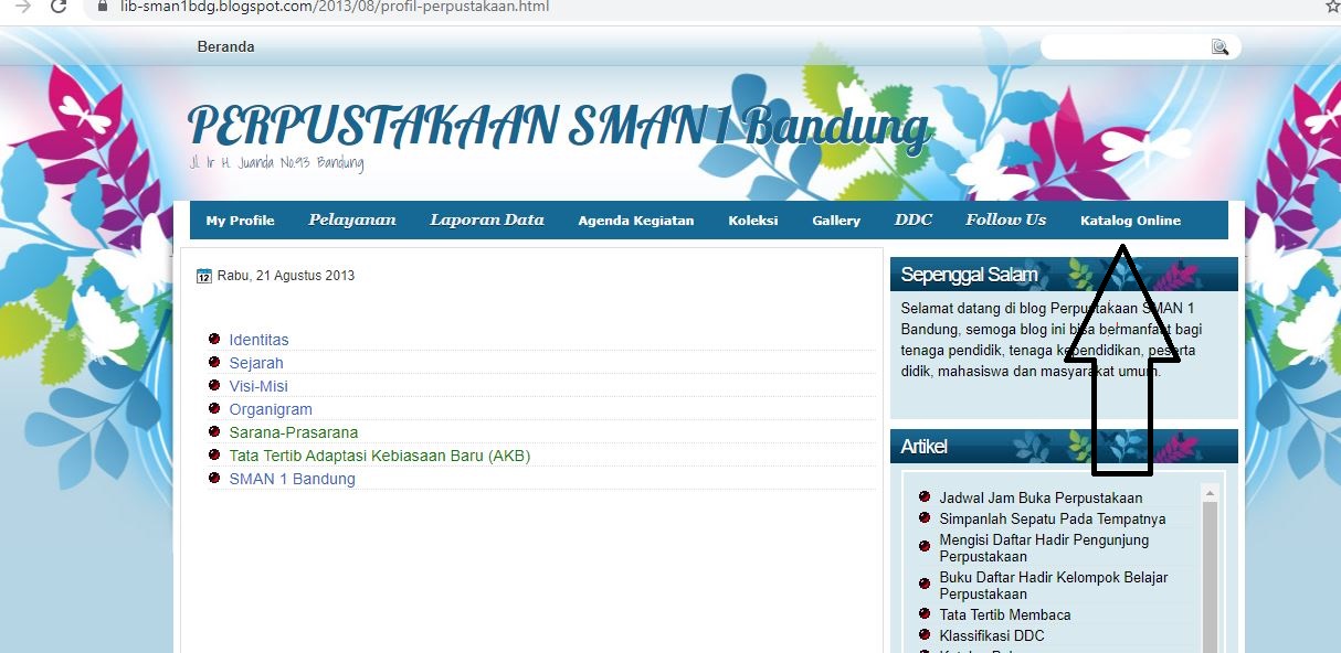 - Buka kembali website perpustakaan https://info.lib.sman1bdg.sch.id