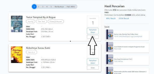 - Setelah tahu pilihan buku mana yang akan dipinjam klik kolom menu Tampilkan Detail